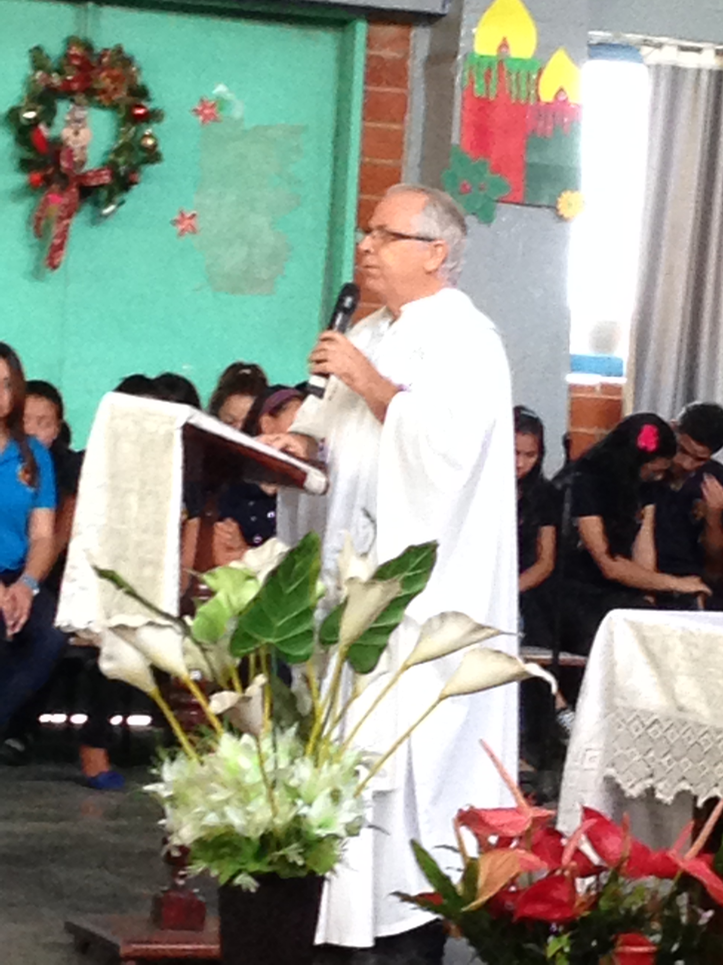 La emotiva Misa de ACCION DE GRACIAS con celebrada por dos sacerdotes, siendo uno de ellos el Pbro. Manuel Alvares Martínez. , Promotor de la construcción del edificio, pues era su deseo darle a la comunidad de Mariches un Centro donde los jóvenes tuvieran la oportunidad de preparase en distintos oficios y actividades que les permitieran ingresar al mercado laboral y tener un mejor futuro.