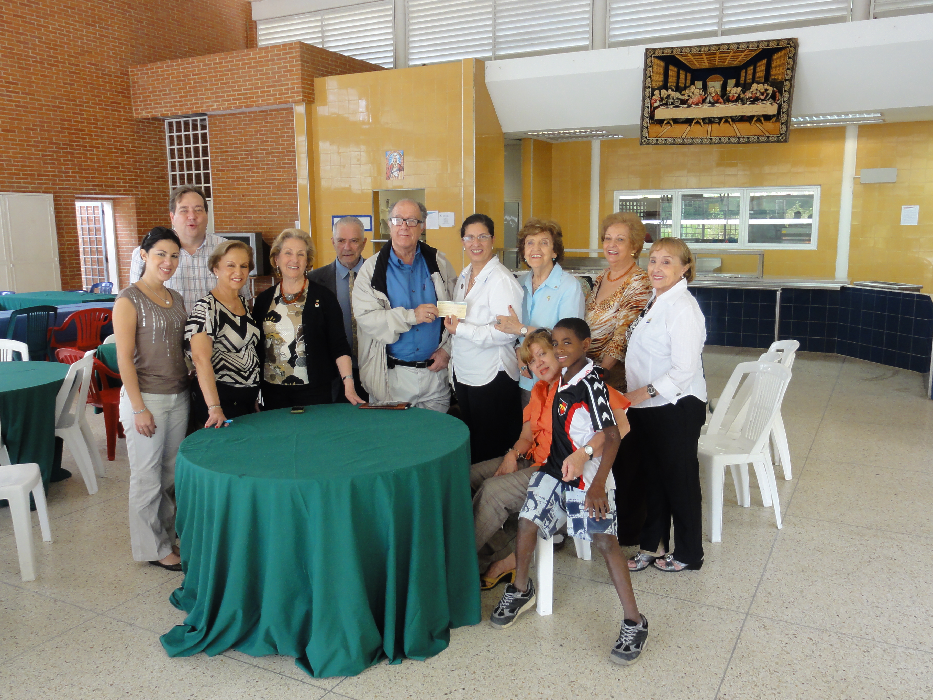 En la Colmena tenemos un proyecto que seguimos del año pasado y creemos que en este podamos conseguirlo, es un salón para clases de cocina, donde ellos piensan podrán enseñar no solo a los niños de la Colmena que estén interesado, sino a los de la comunidad. Pero mientras tanto hay otros proyectos más urgentes en los que nos hemos involucrados. Tenían un problema con la piscina y nuestro compañero rotario Ing. Roberto Centeno se ofreció estudiar lo que pasaba y ya consiguió un equipo que le haga el cambio a la piscina de agua dulce al agua salada. Tiene que instalarse un equipo de clorimetro, y la instalación del filtro de agua potable. Para eso se le dio a nombre de Rotary Caracas un cheque por Bs. 34.000,00 que es para el pago del equipo humano que les contratamos para llevar a cabo ese proyecto y por ese precio. Con esto ellos van a poder darle clases de natación no solo a los niños de ellos, sino a un grupo de niños especiales, a los de la comunidad, y a los del los campamentos vacacionales.